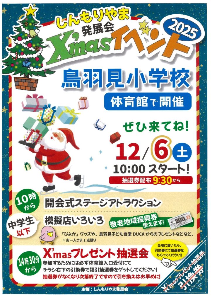 鳥羽見小学校にて毎年恒例のX’masイベントを開催いたします。
