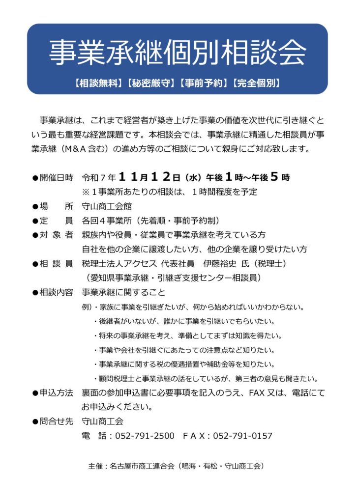 申 込 方 法 :下のチラシデータの2ページ目に必要事項をご記入の上、守山商工会までFAXください。(FAX:052-791-0157)